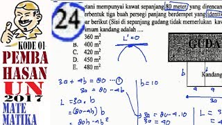 - un sma 2017 Matematika IPA, pembahasan , no 24 , soal cerita luas maksimal