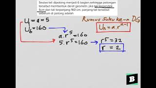 - Seutas tali dipotong menjadi 6 bagian membentuk deret geometri. Panjang sebelum dipotong